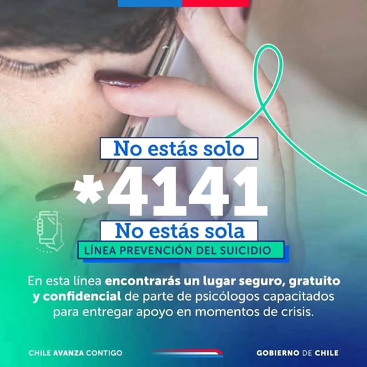 Asimismo, se recordó que existen canales de ayuda disponibles para personas que atraviesan situaciones de crisis en salud mental. En estos casos, se puede llamar de forma gratuita y confidencial al *4141 o al fono Salud Responde 600 360 7777.